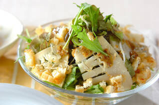 生ハムとチーズを合わせた、ワインに合うタケノコのフライです。