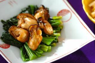 バターしょうゆで味付けしたカキに、ホウレン草がよく合います。