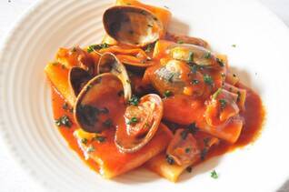 モッチリ食感のパッケリと濃厚ソースのボンゴレロッソ
