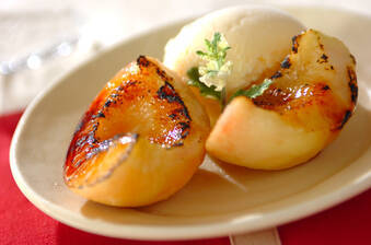 表面がカリッとした温かい桃と、冷たいアイスクリームの相性は抜群! お店の様な味に驚くはず。 15分 243Kcal