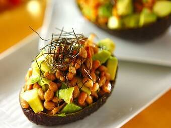 納豆×アボカドのWパワーで風邪予防!とっても簡単なので日々の食卓にとりいれやすい♪アボカドの皮を容器にしたおしゃれなアイデア 10分