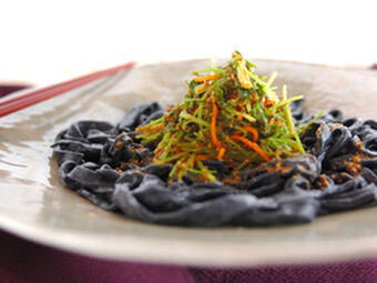 練り黒ゴマを加え見た目は真っ黒、食べるとコクのあるジャージャー麺に仕上げます。仕上げにラー油をたっぷりかけ、豪快に混ぜて召し上がれ! 15分