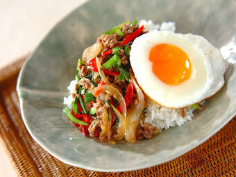 半熟の目玉焼きを甘辛いひき肉とまぜて豪快に召し上がれ。ボリューム満点で男性にもオススメです。 15分