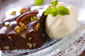 ピーカンナッツのカリッとした食感がおいしいガトーショコラ。生地がトロリとつく位の焼き加減でOKです! 30分