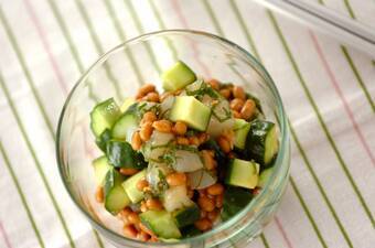 キュウリ入りイカ納豆
