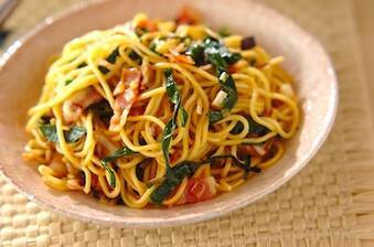 後から来る辛さが病みつきになる焼きそば。ニンニク好きの男性にもオススメです! 20分 337Kcal