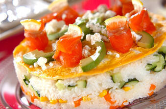 簡単に作れて見た目も華やか!サラダ風のケーキ寿司です。