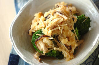 炒めたキノコとゆでた青菜を大根おろしで和えた、ヘルシーな一品。 10分 49Kcal