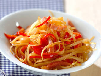 ジャガイモを細く切って、きんぴらのような味付けに。少ない材料で簡単にできちゃいます☆ 20分 274Kcal