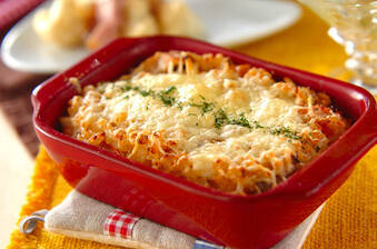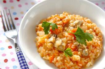 トマト入りのリゾットをオーブンで焼いた、見た目よりさわやかなリゾットです。 40分 665Kcal