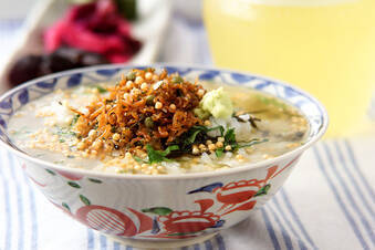 手作りのチリメン山椒がおいしい冷茶漬け。 15分 329Kcal