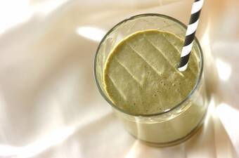 アボカドとホウレン草入りの栄養満点スムージー! バナナと甘酒の甘さで飲みやすく♪ お子さん用には、酒粕を使っていない甘酒を利用してください。5分