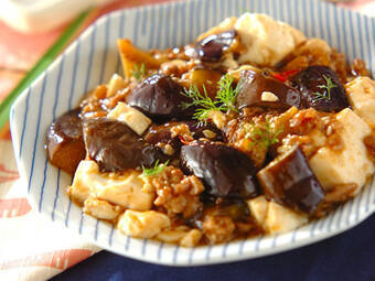 麻婆豆腐にナスも入った大満足の一品。ご飯のお供にピッタリです。 20分 413Kcal