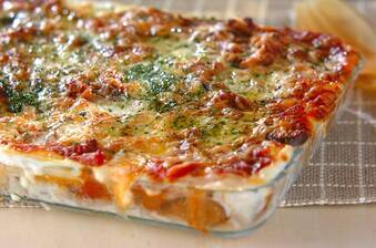 パスタの代わりにワンタンの皮を使ったアレンジレシピ。餃子の皮でも代用可能!残った皮でモチモチのラザニアは一石二鳥で贅沢気分も味わえるのでお勧めですよ♪ 50分 646Kcal
