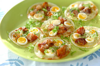 餃子の皮をクラスト代わりにしたひと口ピザ。色鮮やかでとっても綺麗!フィンガーで食べられるのも嬉しいレシピ。 10分 140Kcal