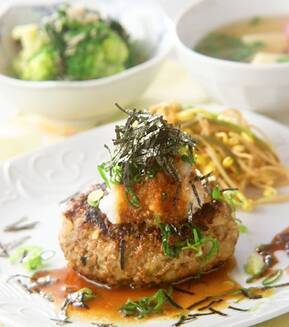 キングサイズのハンバーグ!と思ってナイフをいれると中はホクホクポテト! エイプリルフールを楽しんで。和風おろしソースは普通のハンバーグにも。