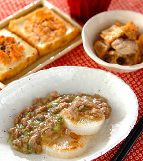 やわらかい大根に、白みそで味付けをした肉みそをたっぷりかけて。