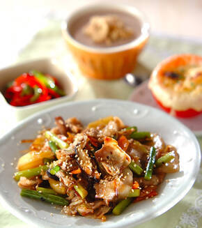 豚肉とニンニクの芽のオイスター炒めの献立