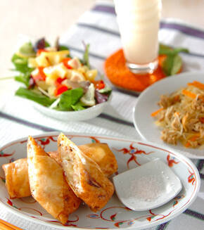 エビとイカをすり身にして、チーズと一緒に春巻きの皮で包みました。