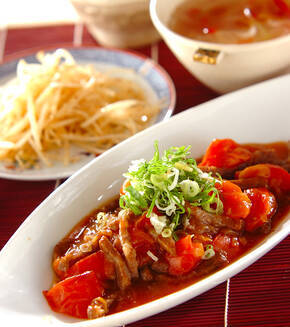 トマトの酸味がサッパリ。甘めの味付けでご飯に良く合います。