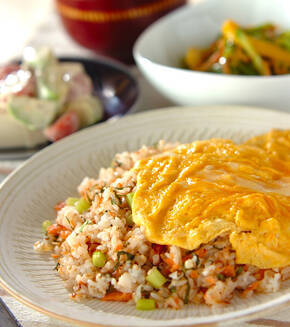 鮭チャーハンオムライスの献立