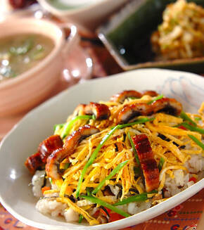おもてなしに!ウナギ蒲焼入り五目散らし寿司の献立