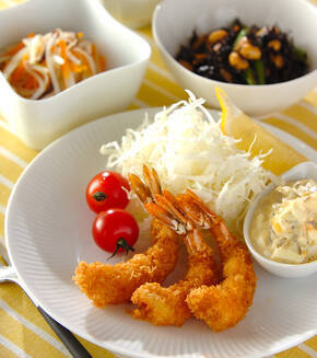 エビは大きいもので作るとプリプリっとした食感が存分に味わえます。副菜には食物繊維が豊富のヒジキを添えて。