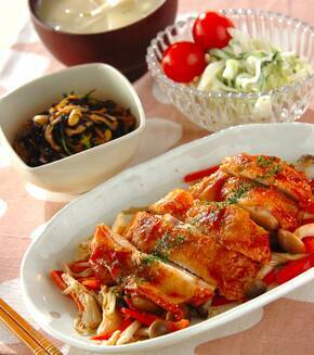 調味料2つ!鶏もも肉のケチャップ焼きの献立