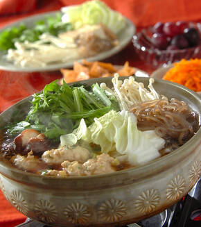 ふわふわのつくねがおいしい鍋は野菜もたっぷり。春巻きの皮はパリッと揚げて!