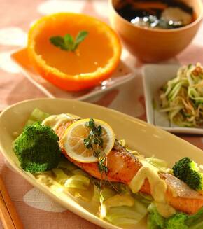 風味豊なソースを使ったサーモンソテーに、デザートはサッパリおいしい甘夏ゼリー!