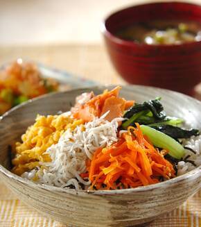 子どもがもりもり食べる!栄養たっぷり鮭とシラスの和風ビビンバ by 金丸 利恵さんの献立