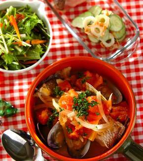 切り身で簡単!鯛のアクアパッツァの献立