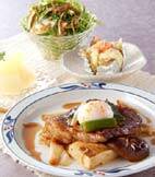 すき焼きをお皿に盛り付けてステーキ仕立てに。見た目は洋風、食べたら和風、不思議で美味しい。 真っ白いお鍋は豆乳の湯豆腐。ぽかぽかあったまる優しいお鍋。