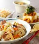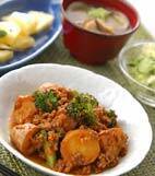 だしで煮て味付けしたタケノコと木の芽入りのエビ種でちょっといい感じの春らしいはさみ揚げ 合いびき肉で作るグラタンも長芋とネギとしょうゆ味ですっかり和風であっさり