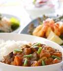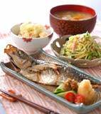 アジの塩焼きは、大根おろしをあわせて、さっぱりといただけます。 野菜たっぷりカレーは、野菜をたくさんいただけてヘルシーでおいしい!