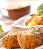 アツアツを食べると中からトロ~リチーズが!バジルチーズコロッケ。 長ナスにタネをつめて、揚げたナスのはさみ揚げ。ビールが合います!