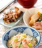 ゆでカニを1パイ使ったカニのあんかけご飯!カニのうまみがまるごと。 納豆と野沢菜の風味が素敵な納豆オムライス。お昼ご飯にもいいですね。