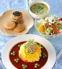 素敵に仕上げたおしゃれオムライスは食卓を豪華にしますね。 ナスの肉みそがけは、八丁みその独特な風味が美味しいです。