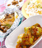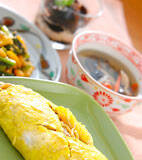 ウナギのグラタンは長芋がとろ~んとやわらかな和風グラタン。 さっぱり味の焼きそばを卵でくるみました。たっぷりの大葉の風味がきいています。