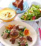 大根おろしでさっぱりと。菊菜の風味が良く合う、サイコロステーキ。 豆乳はまろやか、キムチはピリッと。豆乳キムチ鍋はあったまりますね。
