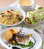 タケノコご飯は、タケノコの香りがほのかに広がって、上品なお味です。 サバのハーブ焼きは、オーブンに入れるだけのお手軽な1品。