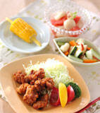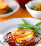 ポークハワイアン。ジューシーなパインが豚肉の旨味を引き出します。 コーンコロッケはコーンの甘さが美味しい。