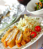 もち入りトンカツ。重ねた薄切り肉からトロ~ッと出るもちが楽しい。 チキンのまるごとカレーは本格的。食べごたえも満点。