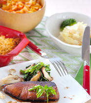 ブリのイタリアンステーキ。赤ワイン入りのタレでさっぱりいただきます。