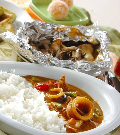 ココナッツの甘さとカレーのスパイシーさが絶妙!イカカレー。