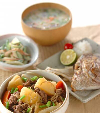 ゴロゴロ野菜がおいしい、関西風肉ジャガ。