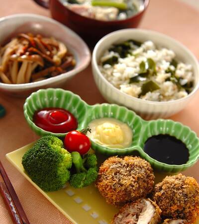 コロコロしたかわいいシイタケの肉詰めフライ。