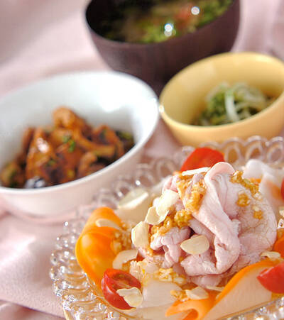 ささ身と秋野菜のゴマみそ炒め がおいしい!