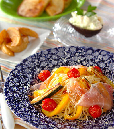 【メイン食材】 ゴーヤ、ズッキーニ、トウモロコシ、ナスなど。ビタミンが豊富な野菜でお肌の調子を整えましょう。