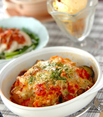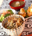 【メイン食材】キノコ、厚揚げ、レタス、ジャガイモなど。キノコをたっぷり使った、秋の味覚満載の献立です。